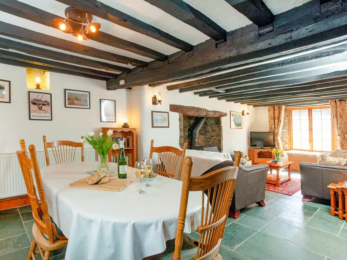 With its beautiful, sloping thatched roof, Hope Cottage is one of two adjoining cottages that formed what was known as the Rolle Arms, an old medieval inn. Listed by English Heritage in 1967, it is believed that some of the early features and the roof structure may date back to medieval times. The Tap Room which is now the laundry and boot room has curved walls where the oak beer barrels were once stored. Beamed ceilings, exposed stonework, and a large fireplace showcase this traditional cottage and offers a peaceful retreat at any time of year. Hope is located in the village of Chittlehampton and is only a short walk from the village square, award-winning pub, The Bell Inn, Chittlehampton Village Shop, Post Office & Tea Room. For a 16th-century cottage, there is no need to worry about low ceilings; we recently had a visitor who was over six feet tall and they had plenty of headroom!